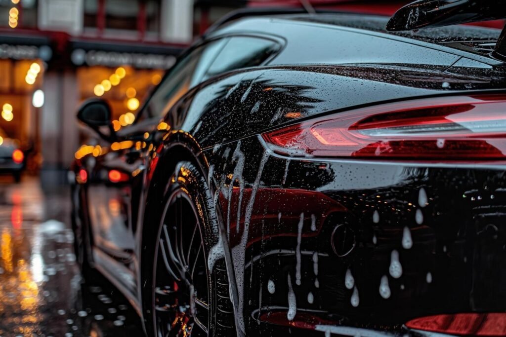 Ceramic coating is a long-lasting protective layer applied to your car’s paint that shields it from UV rays, dirt, water spots, and minor scratches. Our 5-year ceramic coating bonds with your vehicle’s surface to create a durable, high-gloss finish that keeps it looking showroom-new with minimal maintenance. It’s the ultimate solution for preserving your car’s shine and value over time.